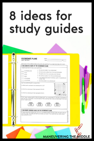 If you find this information helpful or what to use our study guides, consider checking out more of our resources! At Maneuvering the Middle, we design and develop standards-based math resources for grades 5 – Algebra 1. Our curriculum provides high quality, engaging resources for students and provides teachers with planning resources and plenty of training.